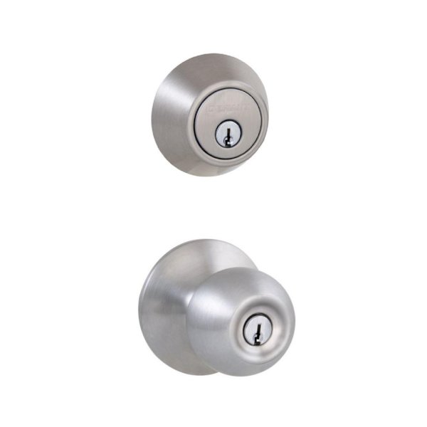 Tylo Satin Chrome Exterior Entry Door Knob and Single Cylinder Deadbolt Combo Pack