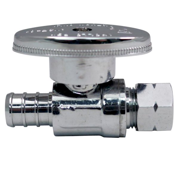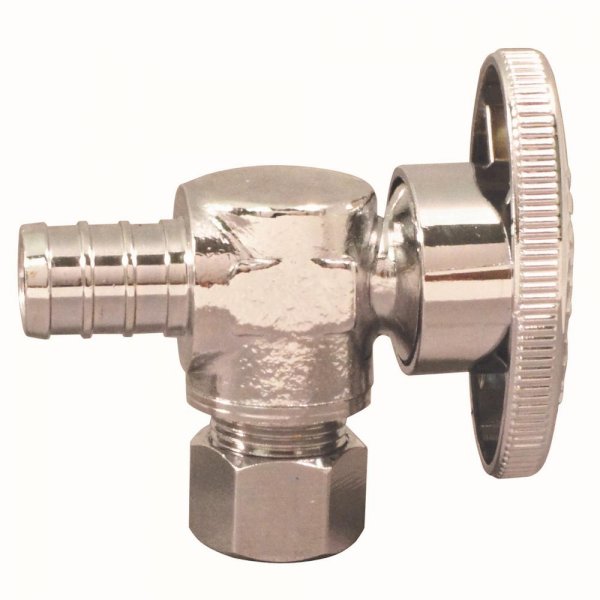 1/2 in. Chrome-Plated Brass PEX Barb x 3/8 in. Compression Quarter-Turn Angle Stop Valve