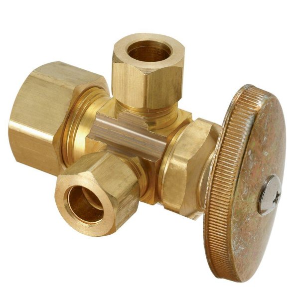 1/2 in. Nominal Compression Inlet x 3/8 in. O.D. Compression x 3/8 in. O.D. Compression Dual Outlet Multi-Turn Valve