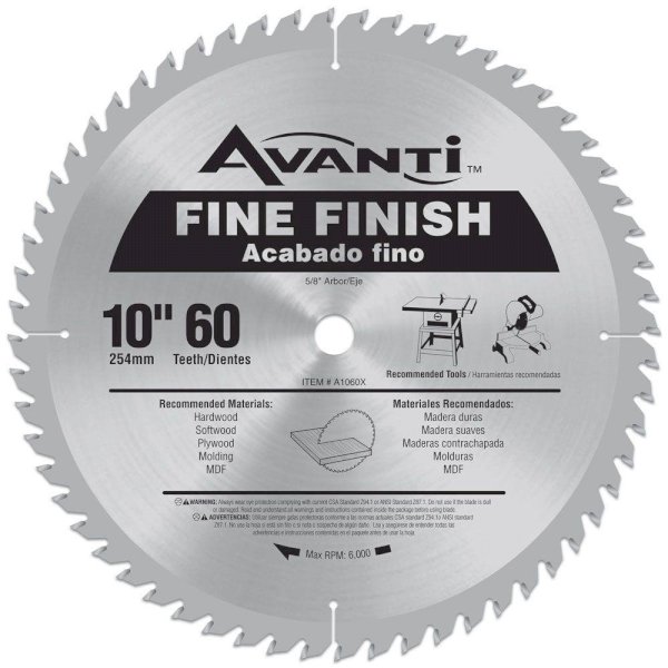 10 in. x 60-Teeth Fine Finish Saw Blade