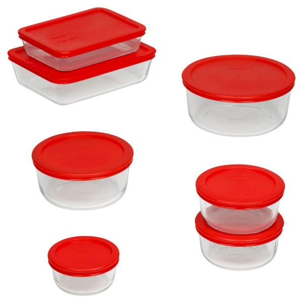 Simply Store 14-Piece Glass Storage Set with Red Lids