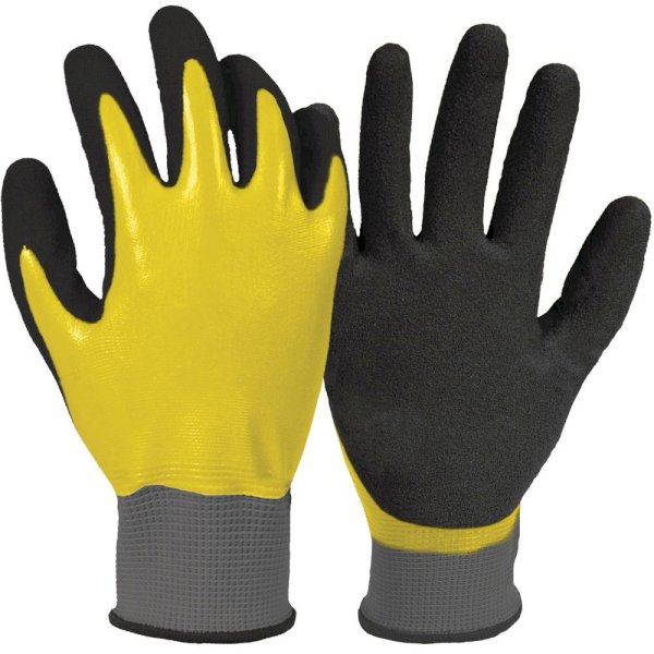 Water Resistant Large Yellow and Black Nitrile Dipped Gloves (1-Pair)