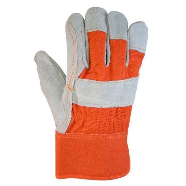 Orange Suede Cowhide Leather and Denim Large Work Gloves