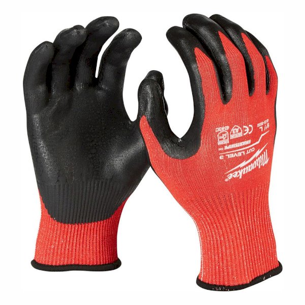Large Red Nitrile Dipped Cut 3 Resistant Work Gloves