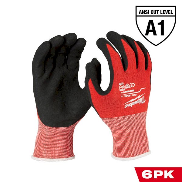 Large Red Nitrile Cut Level 1 Dipped Work Gloves (6-Pack)