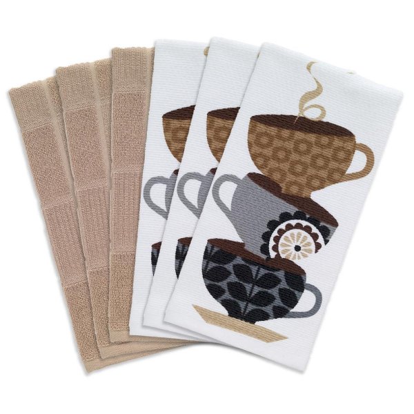 T-fal Multicolor Coffee Cups Cotton Print Dual and Solid Kitchen Dish Towel (Set of 6)
