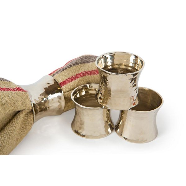 Taper Hammered Silver Brass Metal Napkin Rings (Set of 4)