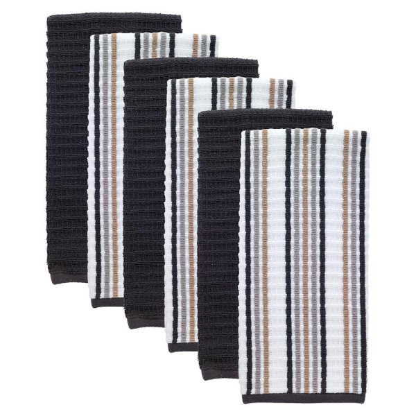 T-Fal Neutral/Charcoal Solid and Stripe Waffle Terry Kitchen Dish Towel (Set of 6)