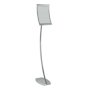 Curved metal freestanding floor displays combine style with functionality. The frame includes non glare lens for easy load and unload of graphics. Features quick change magnetic lens.