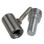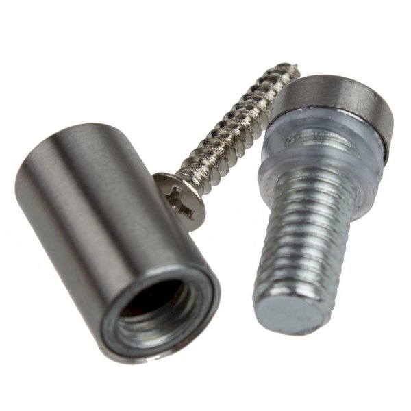 Stainless steel standoffs and cap assembly to protrude glass, mirrors, signs or any other object out from a wall or table. GlideRite Hardware standoffs are made of stainless steel with a brushed stainless steel finish. Price includes a single standoff, cap, nylon washers, mounting screw and drywall anchor. Cap bolt is 5/16 in. Dia and the mounting hole is 3/16 in. in diameter. Standoffs from GlideRite Hardware are available in diameters of 1/2 in. to 1-1/2 in. and in various lengths. Diameter: 1/2 in. Cap Height: 1/8 in. Base Length: 3/4 in. Panel Thickness: 1/8 in. Finish: Brushed Stainless Steel Material: #202 Stainless Steel.