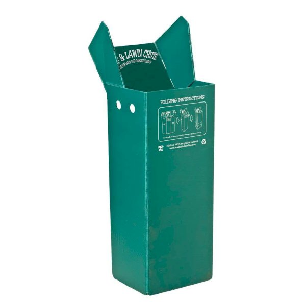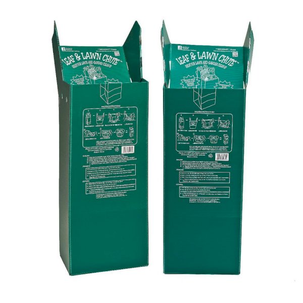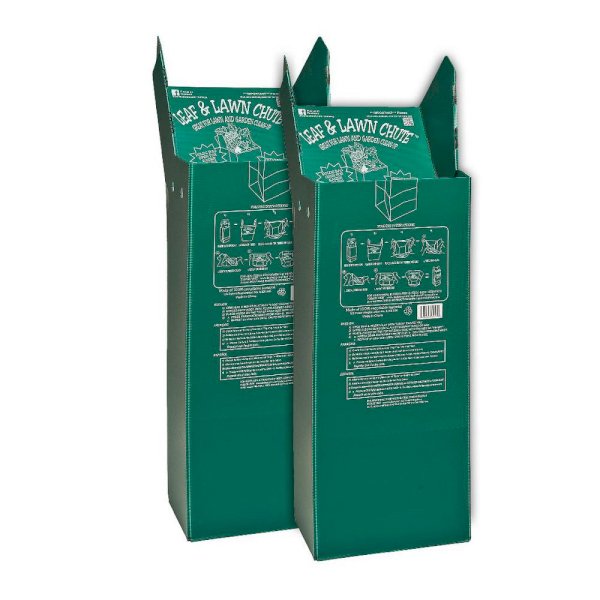 This item is a package containing 2 of the popular LeafEasy Leaf and Lawn Chute. The Leaf and Lawn Chute is a tri-fold sheet constructed of high-density, corrugated plastic. This 100% plastic item, forms into a 3 sided box shape and designed to help keep a 30 Gal., paper yard waste leaf bag, upright, while reinforcing the sides of the bag to prevent ripping or seam bursting. Because the Leaf and Lawn Chute is made from a single sheet of plastic there are no moving parts or assembly required. The user simply slides the folded and flat item in to an open paper bag, unfolds or opens the 2 sides, to form the 3 sided box shape, then presses in on the top portion, to form the angled chute. It is now assembled and ready to begin filling the leaf bag. The user can compress the debris so that they can fit more material in each leaf bag. The sidewall strength provided by this device allows the user to fit nearly 20% more debris in each paper bag, so fewer leaf bags will be used. The Leaf and Lawn Chute is durable, water resistant and reusable. After filling the leaf bag the Leaf and Lawn Chute is lifted out of the paper leaf bag easily and cleanly and then folded flat for easy storage. When considering cost, features and benefits, the Leaf and Lawn Chute is far superior to any other product available. Other devices are more expensive consist of several parts that require assembly are bulky to use and store or are simply not as easy or effective to use.