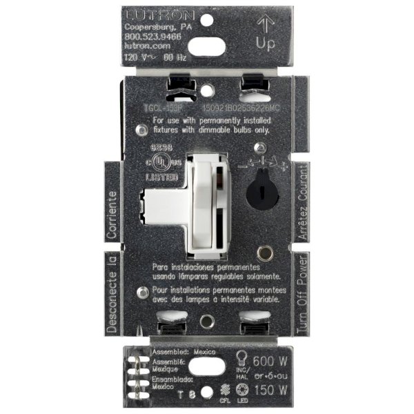 Toggler C.L Dimmer Switch for Dimmable LED, Halogen and Incandescent Bulbs, Single-Pole or 3-Way, White