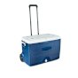 The 60 qt. Wheeled Cooler has rugged all-terrain wheels for easy maneuverability. A hinged, split lid creates easy access to the contents without letting all the cold air out. Superior thermal retention keeps food and beverages cold. Built-in cup holders fit 12 oz. cans and 20 oz. bottles.