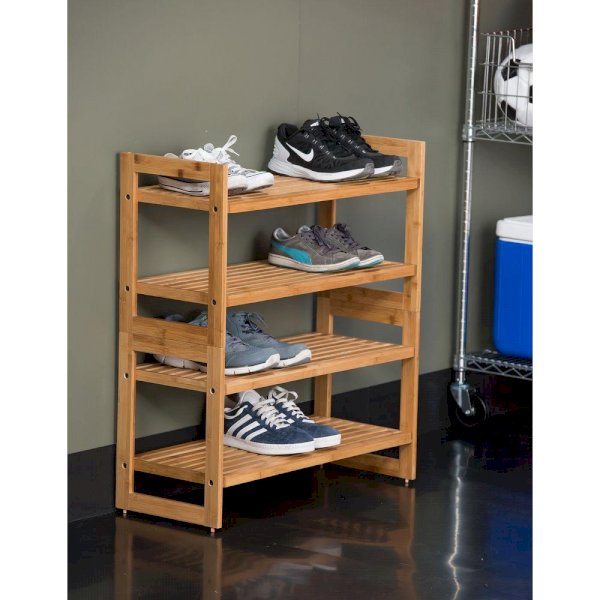 TRINITY Bamboo Shoe Rack is functional and beautiful. This 2-tier shoe rack (2-Pack) can hold up to 6-pairs of adult shoes and can be stacked or placed side by side for any configuration. This simple, no tool assembly unit is the perfect shoe storage solution.