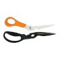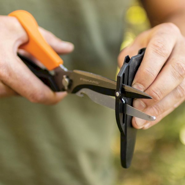 Cut open a wide range of heavy-duty garden materials including fertilizer bags, landscape fabric, screens and more with the multi-use Fiskars Multi-purpose Garden Shears. From cutting bed lining to adding mulch, prepping and maintaining a strong foundation is key to a healthy garden and can involve a variety of arduous tasks – all of which rely on retaining blade sharpness. This versatile tool features ergonomically sculpted handles and fully hardened, precision-ground, steel blades that cut all the way to the tip and stay sharp through heavy use. Other features include a power notch to cut light rope, wire and twine cutters, a pointed awl tip for piercing small holes in cardboard and leather and a bottle opener. The shears can also be taken apart, leaving you with a titanium-enhanced knife for cutting large objects. A sheath for safe transport and storage comes with a built-in tape cutter and ceramic scissors sharpener.