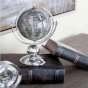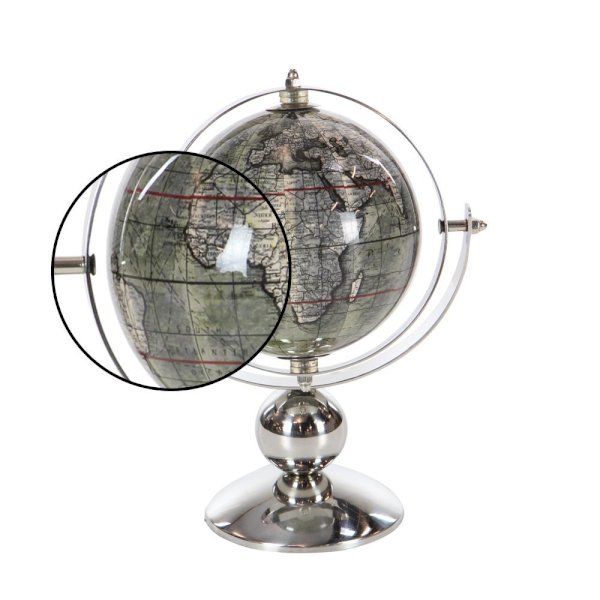 This stainless steel and plastic globe features a polished brown surface with matching sleek silver-finished axis and stand perfect for modern settings. It features a dramatic and detailed illustration of the world map in heavy and thin black outlines against a fading green background. This decorative piece is designed with a sphere-shaped post and silver-finished stainless steel base that is sure to add a touch of sophistication to your contemporary desks, tables or shelves.