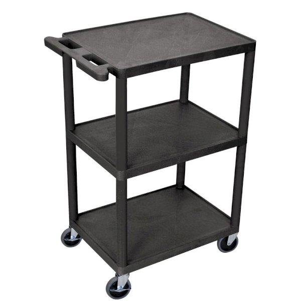EC 35.25 in. W x 18 in. D x 37.25 in. H Utility Cart with 1-Flat and 2-Tub Shelves with 5 in. Casters in Black