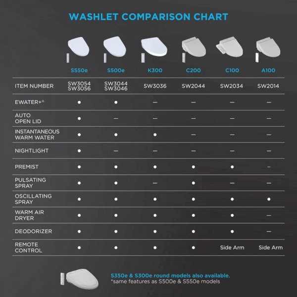 The TOTO WASHLET S550e Elongated Bidet Toilet Seat with ewater+ and Auto Open and Close Contemporary Lid is an electronic luxury seat that cleanses you with warm water, providing an exceptionally clean feeling. Instead of traditional toilet paper that can sometimes be rough and often ineffective, the WASHLET quickly provides comfortable warm water cleansing at the touch of a button. A once mundane trip to the bathroom can become a spa-like experience with a WASHLET. The WASHLET features TOTO's technologically advanced ewater+ system which uses electrolyzed water generated by a technologically advanced process, transforming the water into a safe and powerful compound. By misting the bowl after every use, the ewater+ technology helps to keep your toilet bowl clean and hygienic without any extra harsh chemicals. The Premist function sprays the bowl with water before each use, preventing waste buildup and keeping the toilet bowl clean. The TOTO WASHLET S550e is operated by a luxury style illuminated touch activated remote with 2 user memory to save preferred settings. The WASHLET features 5 spray settings, dryer, air purification, auto open and close lid, heated seat, a nightlight, and instantaneous water heating. The newly redesigned lid style lies flush with the toilet bowl, providing a streamline look and giving the impression of an integrated system.