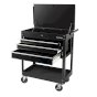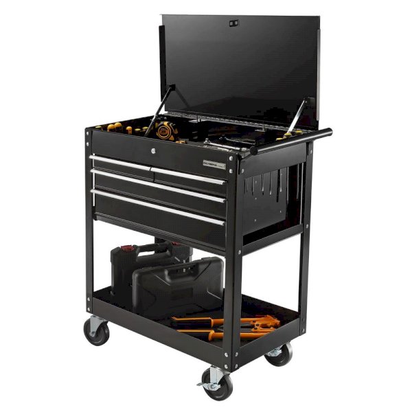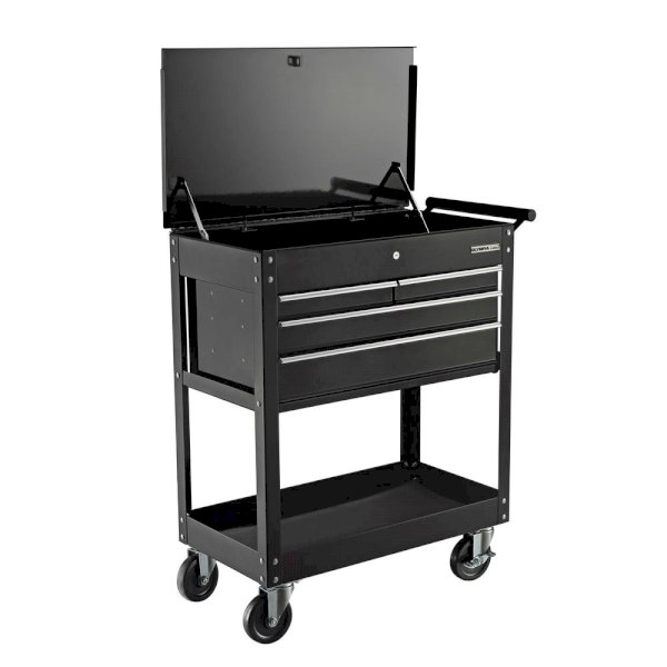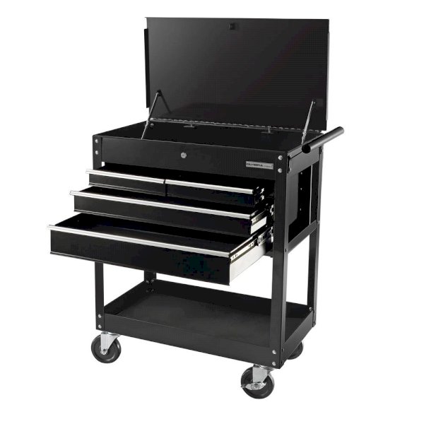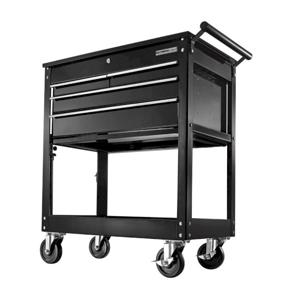 The OLYMPIA 4-Drawer Tool Cart helps you keep the tools you need for the job organized and within easy each. The tool cart features 14 in. deep drawers with no slip liners and has a 600 lbs. total weigh capacity. Mounted on 4 swivel casters, the cart can easily be maneuvered around your work area. Two of the casters feature wheel locks ensuring the cart stays where it’s parked. The OLYMPIA 4-Drawer Tool Cart is great for any workshop or garage and makes a great gift for the tool enthusiast in your life.