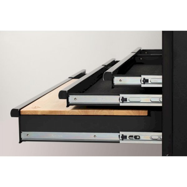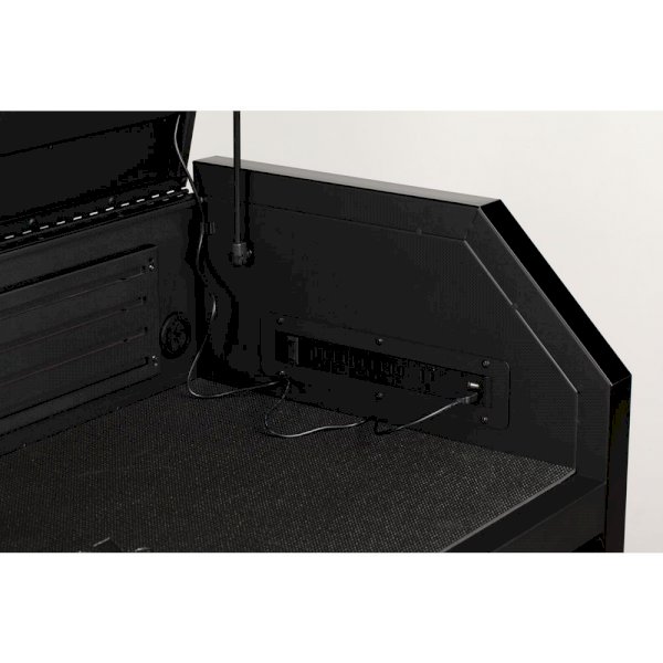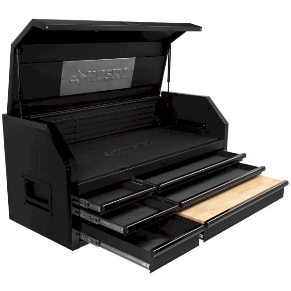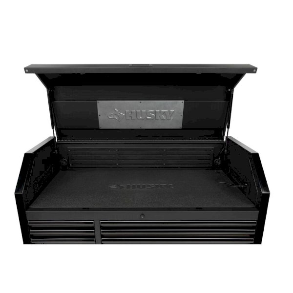 The latest generation of the Husky Industrial 52 in. W x 21.5 in. D 6-Drawer Tool Chest has arrived. This chest adds some exciting new features to an already popular design. One of new features in this chest is the pull-out wooden work surface in the lower right-hand drawer. This drawer will lock into place when fully-extended to create a work station or place to put a laptop. The wood top is also hinged so you can lift it up to store tools and supplies. Another new feature is the addition of a 550 Lumens LED light bar integrated into the chest lid, which will provide additional lighting to your workspace. The chest is built to last with all-welded 18-Gauge steel construction and is finished with a tough, industrial textured black powder-coat finish. All drawers are full-extension and glide on ball bearing slides that can support up to 120 lbs. These slides also have a soft-close retention system that pulls drawers closed and ensures that they are secured. The reinforced top lid is supported by gas struts, which make it easier to open and close, while the back of the top till has a large magnetic plate that provides storage and quick access to frequently used tools. Also, inside the lid are 8 electrical outlets and 4 USB ports that allow you to securely charge tools and portable devices while unit is locked. Pair this chest with the coordinating 9-drawer cabinet (Model: H52TR9HDV3) to create the ultimate tool storage solution.