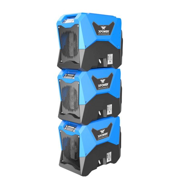 Achieve maximum humidity control in an ultra-space saving design with the XPOWER XD-85L LGR Dehumidifier. Capable of removing up to 85 pints a day at AHAM and 145 pints a day at saturation, this LGR dehumidifier features patent pending Dual Intake Technology which boosts efficiency and performance in a wide range of operating conditions. Designed to maximize storage space, this compact unit stacks up to 3 high and features molded handle grip points on all four sides. An electronic display monitors your job site's current humidity and a record of working time. The XD-85L features an auto purge pump with 40 ft. drainage hose that automatically purges when full--eliminating the task of monitoring collection tank levels. Weighing only 65 pounds, the easily transportable XD-85L gives you the ultimate LGR performance in a size that fits in crawlspaces and other tight areas. Ruggedly built for commercial use, the XD-85L excels in even the toughest restoration and remediation job sites.