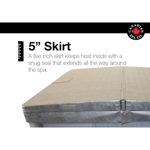 Decrease your electricity bill by upgrading the standard 6 in. inflatable Swift Current cover to a 5 in./3 in. tapered Canadian Spa Company hard top cover. This stylish and energy efficient hard top cover was designed specifically for use with the Swift Current portable spa and ensures your Swift Current will be suitable for all season use, even during the harsh winter season. Canadian Spa Company covers are made from the strongest marine grade vinyl in the industry to withstand the harsh winter months and are both UV and mildew resistant. 2 re-enforced handles make lifting and carrying your spa cover a simple task. Adding to this support are four (4) locking straps which fasten to the corners of the tub and are ideal for locations with lots of wind. The extra-thick 5 in./3 in. insulating foam inside the cover is vacuum sealed with a 2 mm double coated polyethylene vapor barrier to increase the longevity of the cover and retain water temperature within the spa. For additional support, a metal C channel is added at the center of each foam insert. Our cover includes an extra thick full-length steam seal inside the fold to trap any excess heat that would escape through the side of the cover and minimize heat loss. NOTE: Spa NOT included.