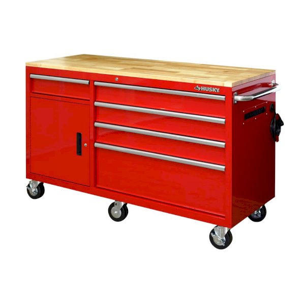62 in. 5-Drawer 1-Door Mobile Workbench in Red