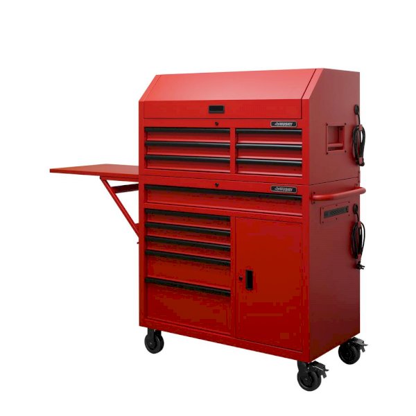 44 in. W 12-Drawer Deep Combination Tool Chest and Rolling Cabinet Set in Matte Red with Extended Side Table