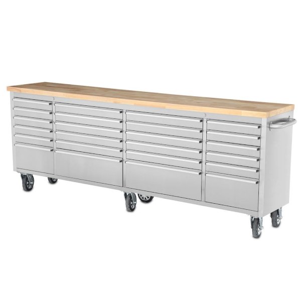 96 in. 24-Drawer Mobile Workbench in Stainless Steel