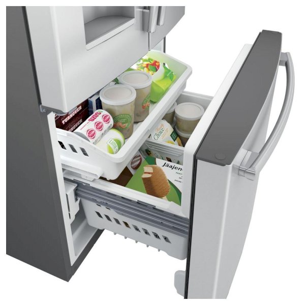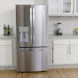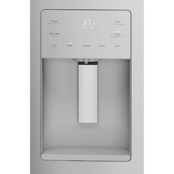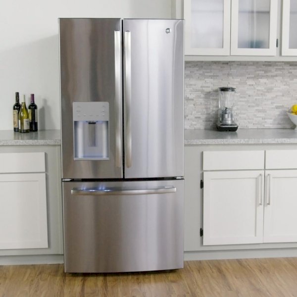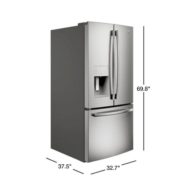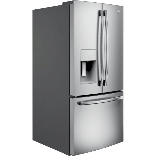 The GE Energy Star 23.8 cu. ft. French Door Refrigerator in Stainless Steel offers an external ice and water dispenser. External electronic digital temperature display allows you to know the internal temperature without opening the door. FrostGuard eliminates the need to defrost your freezer -- ever. GE appliances provide up-to-date technology and exceptional quality to simplify the way you live. With a timeless appearance, this family of appliances adds allure and functionality to any kitchen. And, coming from one of the most trusted names in America, you know that this entire selection of appliances is as advanced as it is practical.