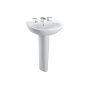 This wall-mount design is stylish and contemporary, fitting into any bathroom space. Featuring elegant curves, deep bowl and rear overflow. Includes CeFiONtect ceramic glaze that prevents debris and mold from sticking to cermanic surfaces, leading to fewer chemicals and less water in cleaning.