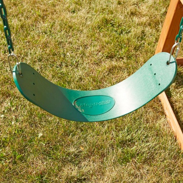 The Swing-N-Slide Regular-Duty Swing Seat allows your child to fill hours of fun swinging on their play set. The 27 in. seat was built with durability and safety in mind, featuring flexible durable plastic construction with vinyl-dipped chain for long-lasting fun. Also, the flexible seat is longer and wider than previously designed to provide a more comfortable seat area. The swing safely holds up to 115 lbs. when attached to a swing hanger (sold separately), making it suitable for children to enjoy.
