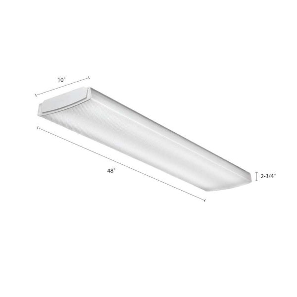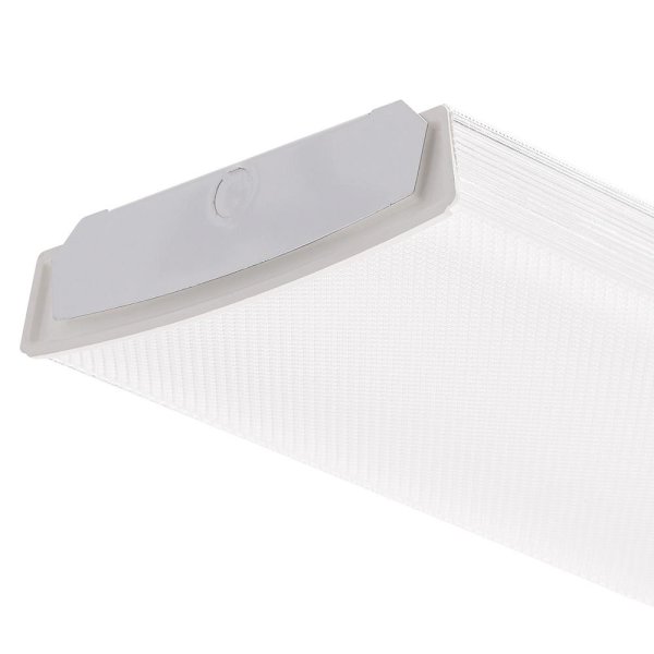 The 4 ft. Integrated LED Wraparound Flushmount from Lithonia Lighting provides bright, uniform illumination for general purpose use. More cost-efficient to operate than incandescent and fluorescent lights, it features a 60,000-hour average lifespan with the LEDs conveniently integrated for ease of installation and maintenance, so you never have to worry about changing a bulb. Luminous end caps soften the overall appearance for improved aesthetics, while the white finish complements any interior setting. Ideal applications include garages, workshops, kitchens, utility rooms and corridors in both commercial and residential environments.