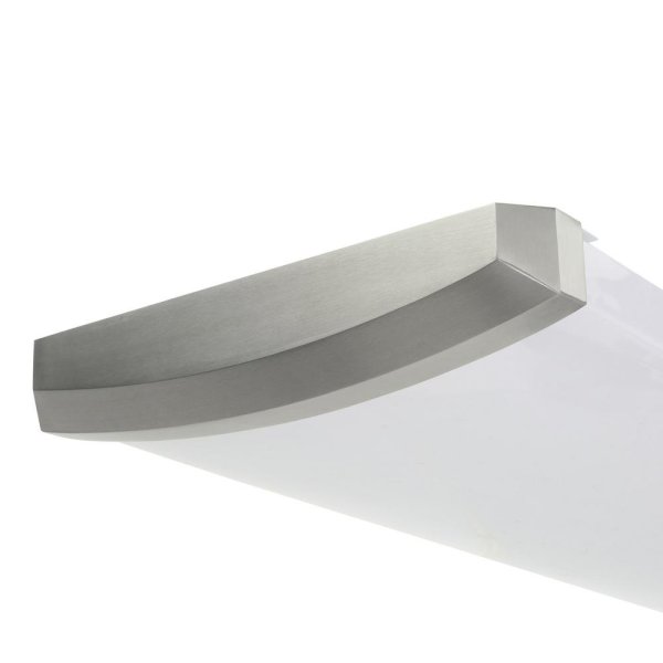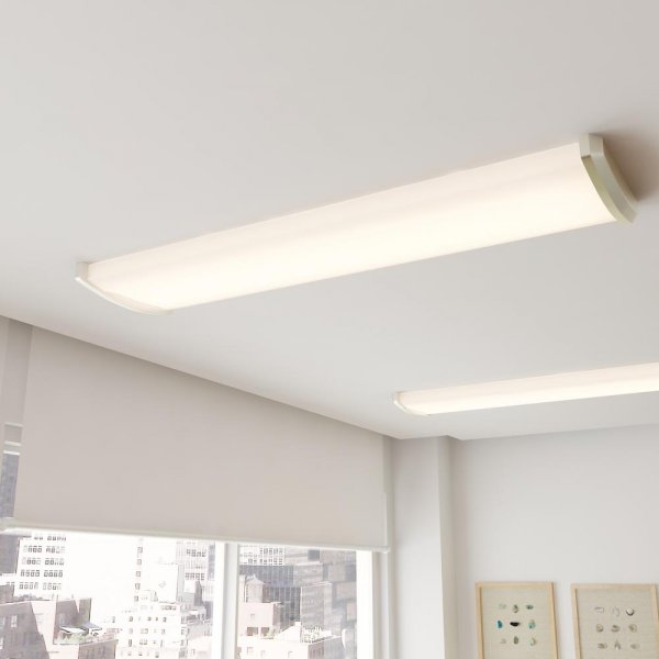 The Hampton Bay Aranda 4-Light Ceiling Mount Brushed Nickel Linear Fluorescent Flushmount features a white lens that offers uniform light and ends that complement many appliance finishes. This ceiling light uses less energy than incandescent bulbs while providing more light output. Uses four 48 in. 32-Watt T8 fluorescent bulbs (sold separately).