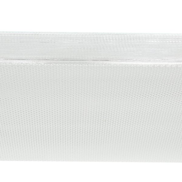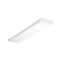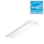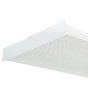 The Lithonia Lighting 4 ft. Wraparound Lens Ceiling Fixture has a 4-bulb, square-basket design and has a clear prismatic diffuser and white metal ends. This fixture has an instant-on ballast design to help prevent flickering and humming and is great for areas requiring high light levels. This fixture is ideal for use in workshops, utility rooms and garages.