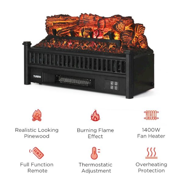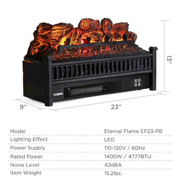 About TURBRO Eternal Flame Series Eternal Flame EF23-PB electric log insert heater is a secret Winter decoration that you could ever want. Warms up a medium room within minutes by a finger pressing without any extra preparation work. The well-crafted glowing pinewood ember bed and the realistic flickering flames effect can provide your family with a warm ambiance while levels up your home decoration. It is easy to control, gentle-looking, high heating capacity, user-friendly. Absolutely your smart choice for this Winter.