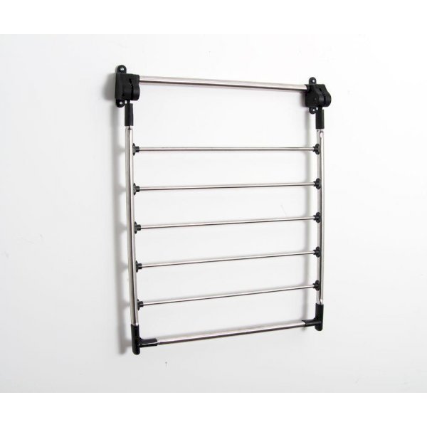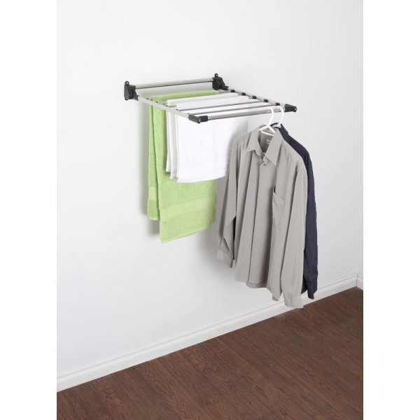 The Greenway wall-mounted drying rack is perfect for small laundry rooms or bathrooms. It features 6 bars, 10 feet of drying space and is adjustable to 3 different heights. This unit folds down flush against the wall when not in use.