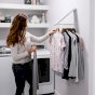 This InstaHANGER Clothes Storage System creates 12 in. of instant clothes storage or drying space in a laundry room, utility closet, bathroom, mudroom, cabana or in any other space your imagination takes you. Strong and sturdy, this hanger is made of rugged white plastic and a chrome-plated steel hanging rod that supports up to 50 lbs. of clothing. Easy to install with any wall type, this handy hanger collapses to 2 in. for convenient storage when not in use. Over-the-door bracket is not included.
