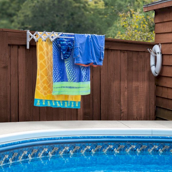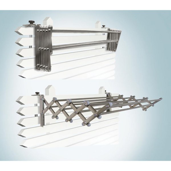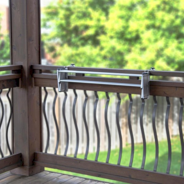 This heavy-duty expandable laundry rack by Greenway has 8 aluminum rods and is great for towels and sheets. It can easily be placed on any balcony, fence, RV, pool shed or in your laundry room or basement. It can be installed in minutes to wood, steel or masonry, and folds away when not in use. It is perfect for outdoor use in the warmer months and indoor use in the colder months.