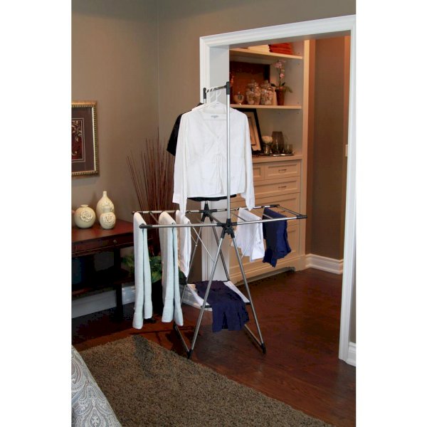 Have you been looking for a clothes drying rack that won't take up too much space. This small but mighty stainless steel drying center is just what you need. The compact design features 30 ft. / 9, 1 m of drying space on the bars, a mesh shelf that's perfect for your flat drying needs, plus an overhead hanging bar for shirts and delicate. If space is at a premium but you still want to dry your clothes the environmental way, look no further than the Greenway Compact Laundry Rack.