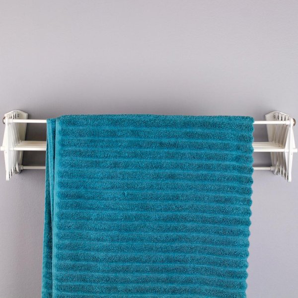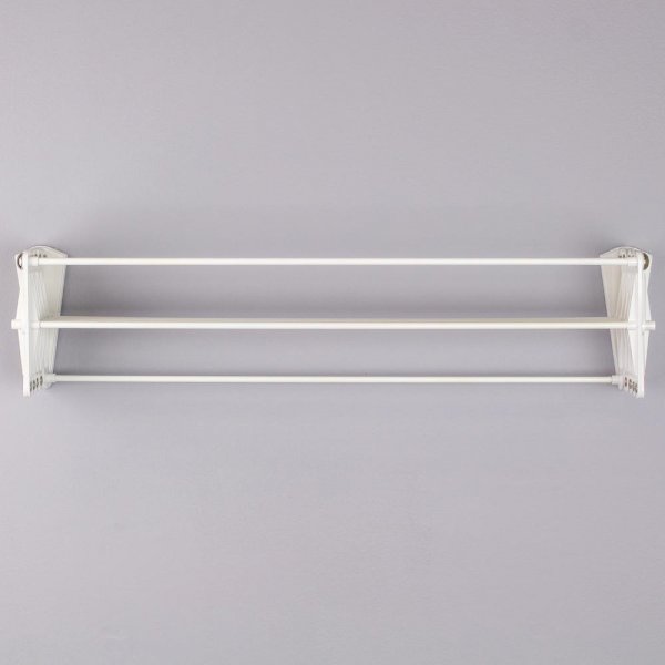 The Accordion dryer is a compact solution for items that need to be hung to dry. It stores flat against the wall when not in use and is ideal for apartments, townhomes or laundry rooms where space is an issue. Easy to install, this rack can hold 35 lbs. on its 7 bars. The dryer is made of plastic with metal hardware and will not mildew with contact of wet laundry items. It has 12.25 li. ft. of total drying space.