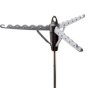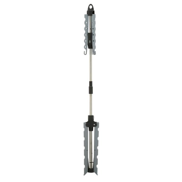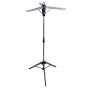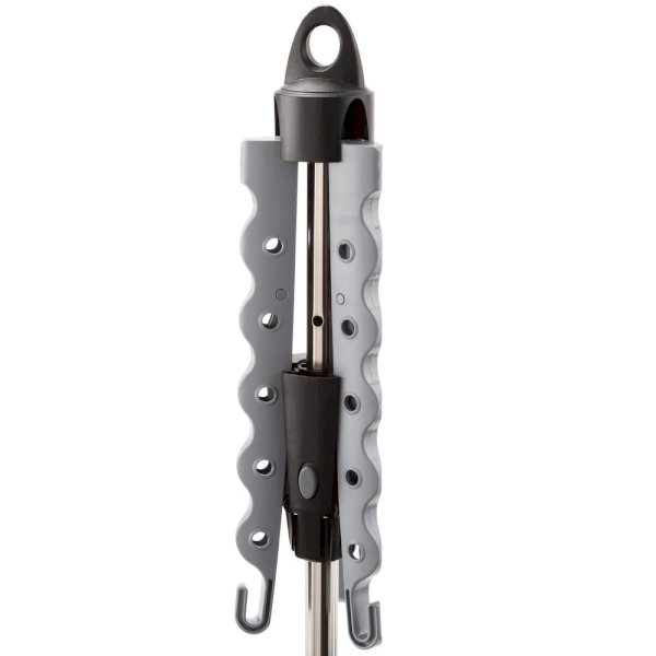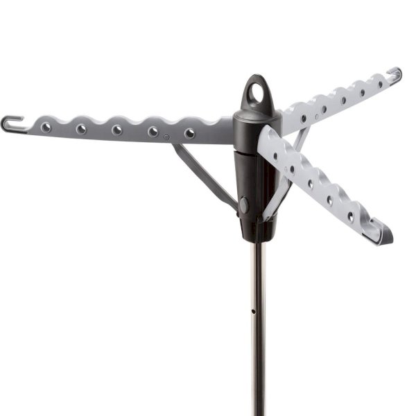 This indoor tripod dryer holds up to 30 garments using its innovative 3 arm system. It takes up little space and can hold longer length products like pants. Easy to assemble and disassemble, this dryer can be taken apart into 2 pieces for storage, or the arms and legs fold down. Hang clothes to dry on hangers using both the holes and curved spaces between the holes for full use of the drying space.