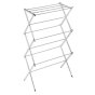 Slim Chrome Commercial Drying Rack, Silver. Dry your clothes naturally with this chrome-finished drying rack. For indoor or occasional outdoor use, the rack is made from a coated steel frame making it sturdy and rust-resistant. This portable rack can be used anywhere such as the laundry room, balcony, porch, bathroom, or kitchen and folds down to 3 in. flat for easy storing. The top tier has 4 cross bars and is ideal for air-drying delicate items such as shirts, hosiery, and lingerie. With 18-linear feet of capacity to air-dry clothes using minimal floor space, this expandable drying rack is a great space-saver. Size: 22.5 in. L x 15 in. W x 41.5 in. H. Color: Silver Fully Assembled With stringent quality control methods, Honey-Can-Do confidently offers a limited lifetime warranty on every product they make.