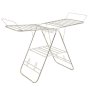 The Sturdy Adjustable Gullwing Drying Rack with Shoe Horns from Everyday Home is perfect for air drying clothes. Great for anyone without the time or space to set up a clothesline. This multi-functional drying rack is great for indoor or outside use. Our sturdy drying rack is a real space saver. Featuring 3 multi-use drying areas are great for lying sweaters flat to dry, hanging towels, pants and more on the 23 closely spaced bars. The 2 accessory bars are great for hanging items on hangers without sliding or touching. Also features 2 sets of shoe horns and accessory hanging basket excellent for delicate or item that cannot be hung. Great for getting out wrinkles. Easily folds up when not in use to save space.