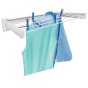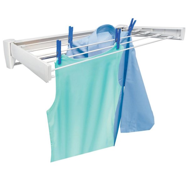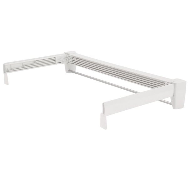 Telegant Plus Wall Mount Drying Racks provide the convenience of a drying rack in the discreet packable of a towel bar. The innovative, collapsible design allows you to have multiple drying lines in an instant when you need it. It is 2.4 ft. wide and has 5 collapsible rails that slide effortlessly in and out of the case. Those 5 rails provide 14 ft. of drying space and can hold up to 27 lbs. That is significant. It means that you can hang your sweaters as easily as your delicate. Rails are powder coated steel rods, so they are strong and smooth and won't snag delicate clothing or linens.