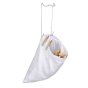 Honey-Can-Do DRY-01313 Hanging Cotton Clothespin Bag, White. Line-drying becomes less of a chore with this easy access clothespin bag. It features a metal hanging hook that keeps clothespins close at hand - right on the line. Made from 100% cotton, this bag has reinforced seams and plastic insert in the rim for durability under heavy use. Measuring 11.8 in. H x 11 in. W it is large enough to hold 150-200 clothespins. The perfect tool for hanging multiple loads of laundry.