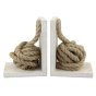 The set of 2 Rope knot bookends adds the right amount of nautical accent to any home or office. Bring the beach house inland and show to add to your collection. The weathered white wood adds a casual feel to the decor piece.