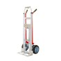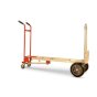 4 in 1 hand truck easily converts from the 2 wheel vertical position to the 4 wheel horizontal position without the use of any bolts or screws. The 4 positions give this unit the capability to be ideal for any size and type of job. It has an 800 lb. load capacity in the vertical position, 1000 lb. in the horizontal position and 500 lbs. in the 45° position where the retractable casters are used to help distribute the load during transport. This is very helpful when the load gets more difficult to move/control in the vertical position. The unit helps to reduce back strain while getting the job done. The built-in nose plate extension folds down to support extra-large and bulky loads. 10 in. puncture proof tires never go flat.