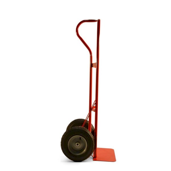 This Milwaukee P-handle truck is an extra heavy-duty truck with an 800 lb. load capacity and 12 in. pneumatic tires that cushion the load over rough terrain. It has an extra wide 18 in. toe plate which helps with larger bulkier loads. The wheel guards help protect the load from the tires. 51 in. is great for high-stacking load applications. This hand truck has a powder coated finish and ships fully assembled. Milwaukee-The Name the Pros Trust.