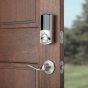 The Kwikset Convert smart lock conversion kit with Home Connect technology transforms your existing deadbolt into a smart lock so you can enter your home with the convenience of keyless entry and enables the lock to wirelessly communicate with other devices in home. The lock allows the user (through a web enabled device) to remotely check the door lock status, lock or unlock the door and receive notifications. Kwikset Convert is easy to install, program and use, and operates on 4 AA batteries. This single cylinder deadbolt can be locked or unlocked by using the keypad or key from the outside as well as the turn button from the inside. The crisp, clean appearance of the Satin Nickel finish adds to the overall look of the product and brings a modern feel.